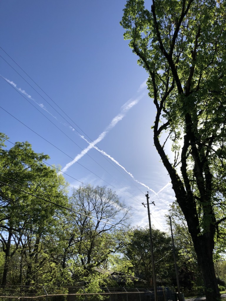 The picture below is a picture I took on the morning of April 8, of the day of the eclipse. Although the picture doesn’t show it because of the trees, I counted EIGHT chemtrails in the sky. I have NEVER seen more than perhaps three chemtrails in the sky. HOW CAN WE EXPLAIN THIS, for this to take place on the very day of the eclipse?
